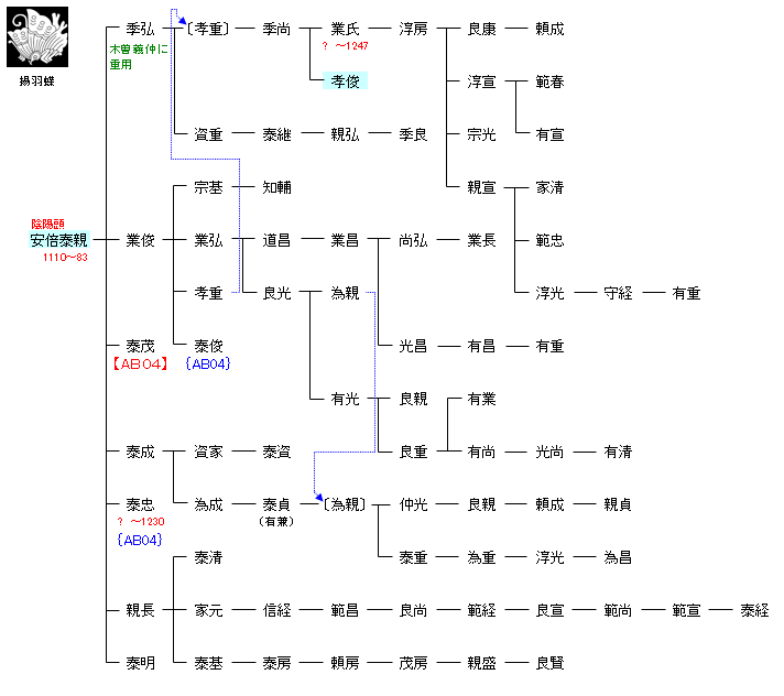 父・季尚の没後に後継者とされていた兄の業氏が眼病のために朝廷から継承を認められず、次男・孝俊を後継者とする綸旨が出されたが、これを拒否した業氏を孝俊ら一族が殺害されてしまう。朝廷はこの事態を看過できず孝俊らを流罪とした。この処分により季弘系も大打撃を蒙り、衰退を続けることになる。 |