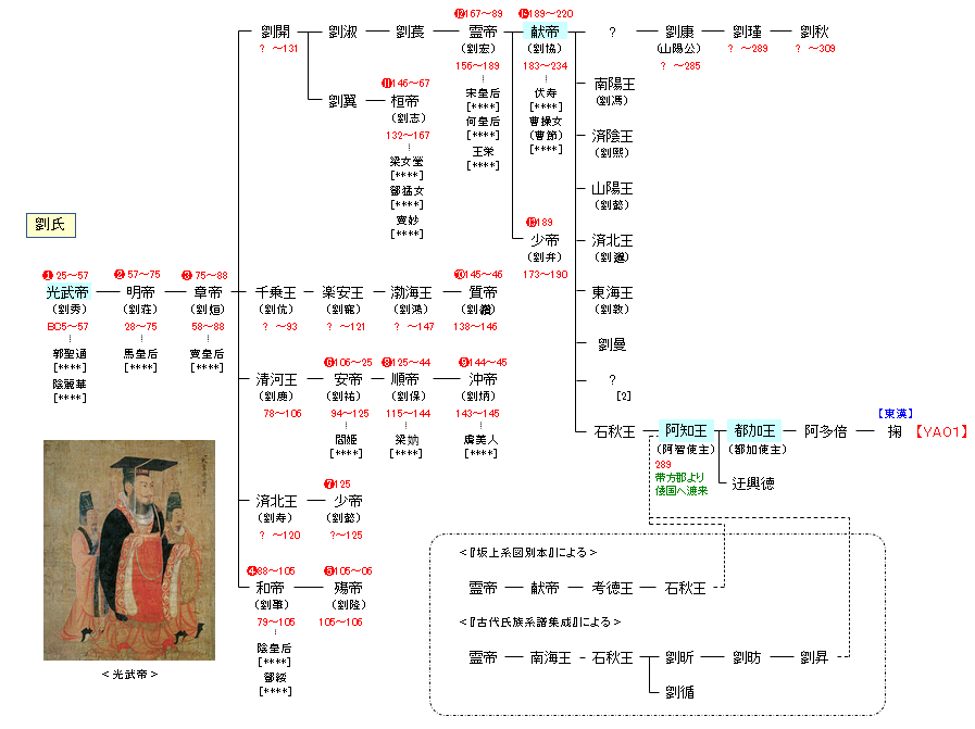 3~4世紀頃、または5世紀前半の応神天皇時代の漢人系渡来人で、東漢氏の祖と言われる。 『続日本紀』延暦4年(785年)6月の条によれば漢氏(東漢氏)の祖・阿智王は後漢の霊帝の曾孫で、東方の国(日本)に聖人君子がいると聞いたので帯方郡から「七姓民」とともにやってきたと、坂上苅田麻呂が述べている。『新撰姓氏録』「坂上氏条逸文」には、七姓漢人(朱・李・多・皀郭・皀・段・高)およびその子孫、桑原氏、佐太氏等を連れてきたとある。 また、阿知王は百姓漢人を招致し、その末裔には高向村主,西波多村主,平方村主,石村村主,飽波村主,危寸村主,長野村主,俾加村主,茅沼山村主,高宮村主,大石村主,飛鳥村主,西大友村主,長田村主,錦部村主,田村村主,忍海村主,佐味村主,桑原村主,白鳥村主,額田村主,牟佐村主,田賀村主,鞍作村主,播磨村主,漢人村主,今来村主,石寸村主,金作村主,尾張の次角村主があるという。 漢人族は大和国今来郡、のち高市郡檜前郷に住んだ。一時は9割が漢人族となり、漢人族の民忌寸,蔵垣忌寸,蚊屋忌寸,文山口忌寸らが天平元年(729年)から高市郡司に任ぜられた。 その後、摂津,参河,近江,播磨,阿波にも移住した。ほかに美濃,越前,備中,周防,讃岐,伊勢,三河,甲斐,河内,丹波,美作,備前,肥前,豊後にも住んだ。 『古事記』によると、住吉仲皇子が黒媛(羽田矢代の娘)との密通の発覚を恐れ、履中天皇に対し反乱を起こし天皇の宮を燃やした際に、平群木菟や物部大前と共に履中天皇を逃した。その功により後に「蔵官」に任じられた