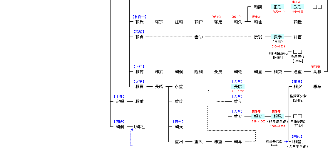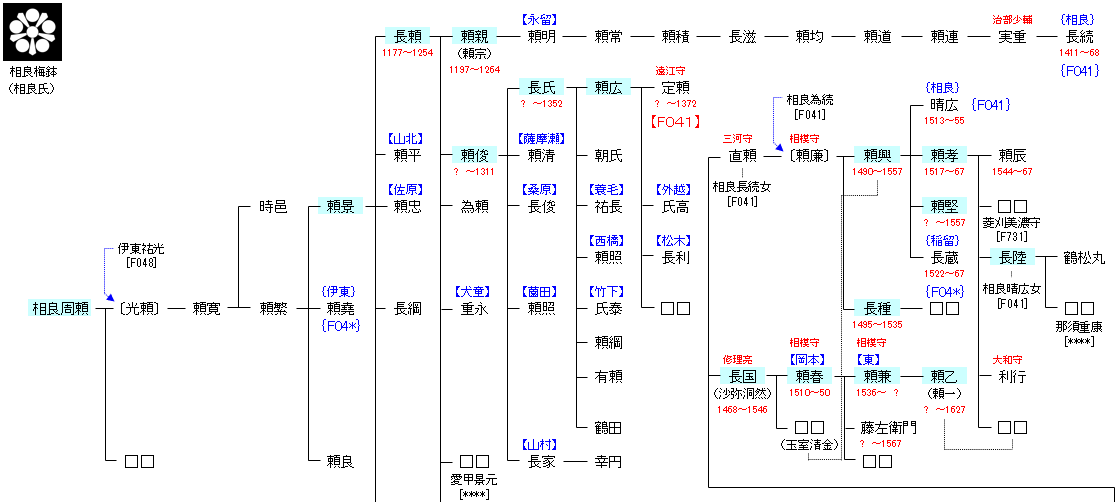 | F007:藤原為憲 | 藤原武智麻呂 ― 藤原乙麻呂 ― 藤原為憲 ― 相良周頼 | F040:相良周頼 |
