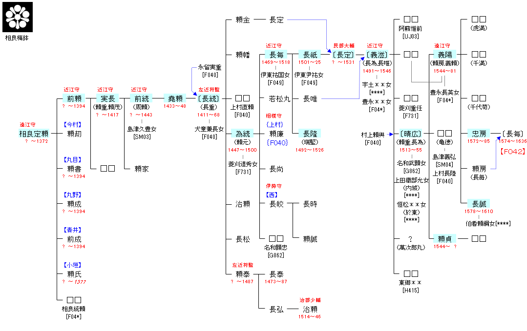 | F040:相良周頼 | 藤原武智麻呂 ― 藤原乙麻呂 ― 藤原為憲 ― 相良周頼 ― 相良定頼 | F041:相良定頼 |