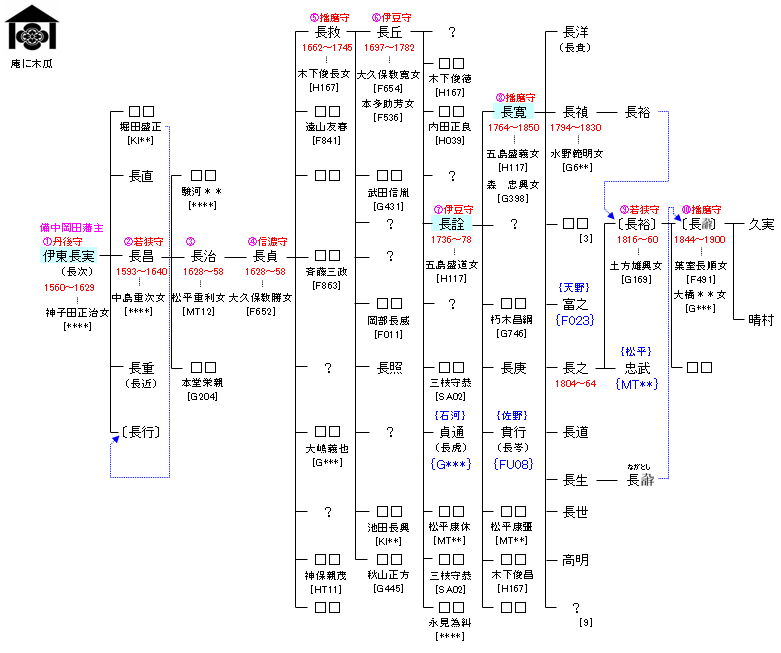 | F045:伊東祐清 | 藤原武智麻呂 ― 藤原乙麻呂 ― 藤原為憲 ― 工藤家次 ― 伊東祐清 ― 伊東長実 | F046:伊東長実 | ● |