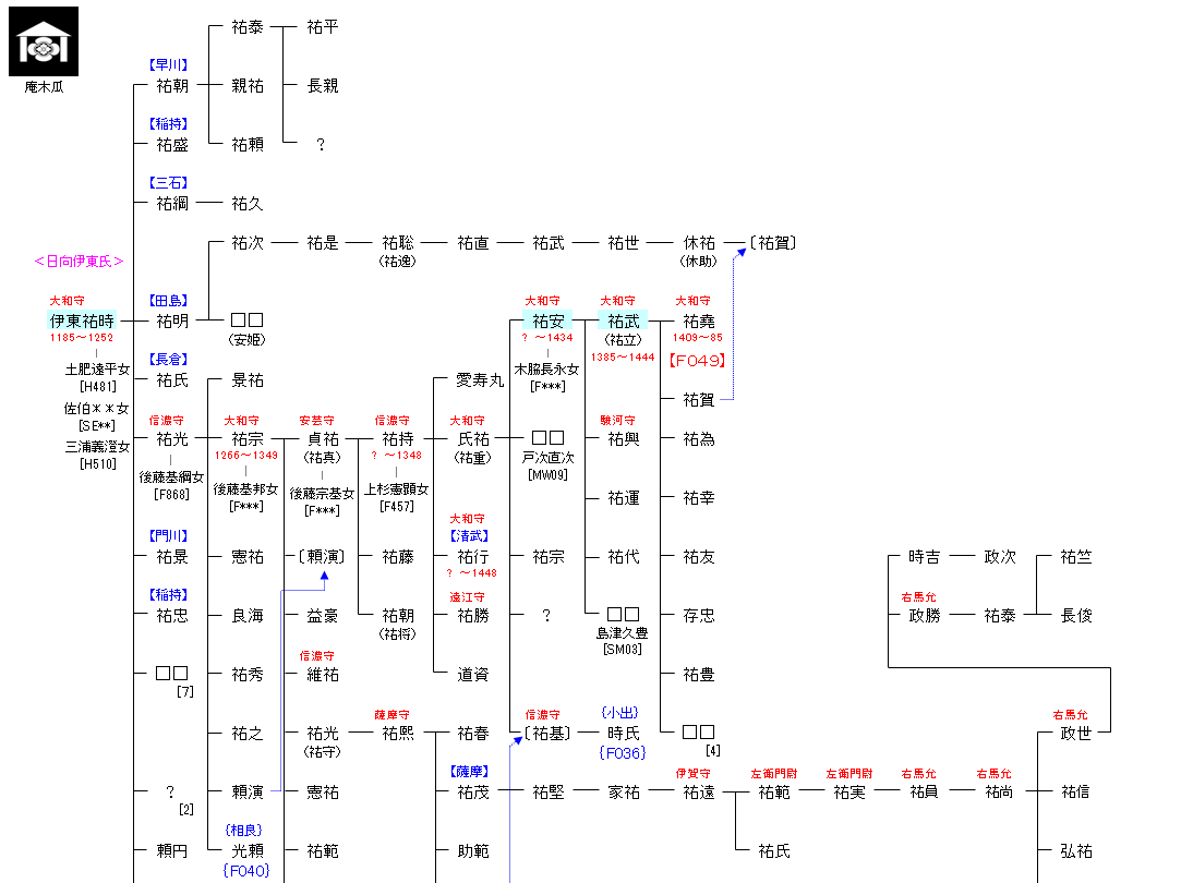 | F047:伊東祐継 | 藤原武智麻呂 ― 藤原乙麻呂 ― 藤原為憲 ― 工藤家次 ― 伊東祐継 ― 伊東祐時 | F048:伊東祐時 |