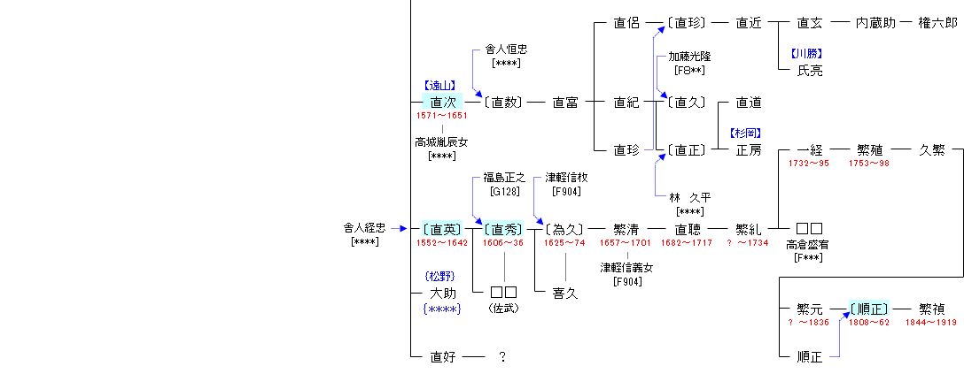 | F309:藤原広業 | 藤原鎌足 ― 藤原房前 ― 藤原真楯 ― 藤原真夏 ― 藤原広業 ― 大道寺義清 | F311:大道寺義清 | ● |