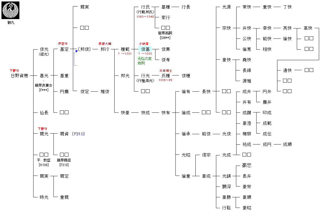 | F315:日野有信 | 藤原真夏 ― 日野資業 ― 日野実綱 ― 日野有信 ― 日野資憲 | F316:日野資憲 | ● |