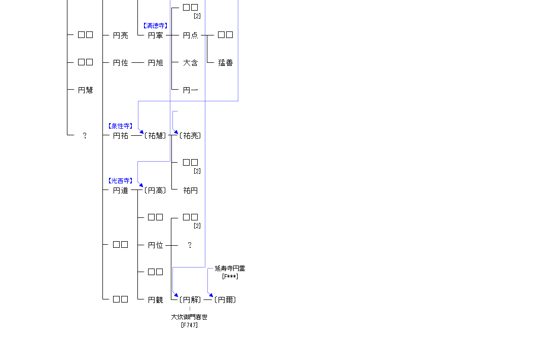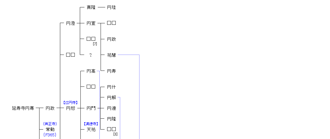 本願寺範宴 ― (直弟)佛光寺真仏 ― 興正寺経豪 ― 延寿寺円尊