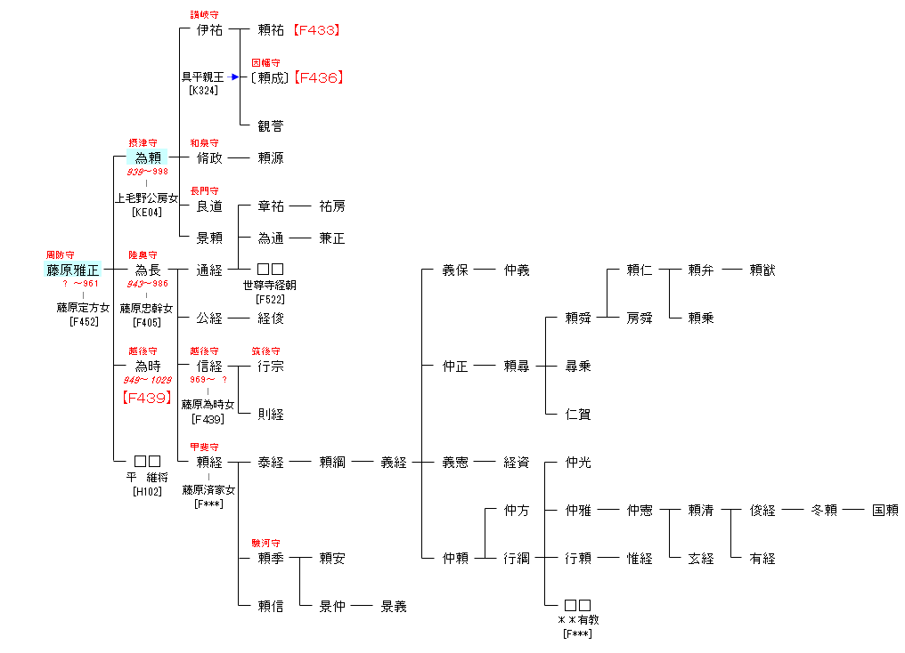 | F431:藤原良門 | 藤原鎌足 ― 藤原房前 ― 藤原内麻呂 ― 藤原冬嗣 ― 藤原良門 ― 藤原雅正 | F432:藤原雅正 |
