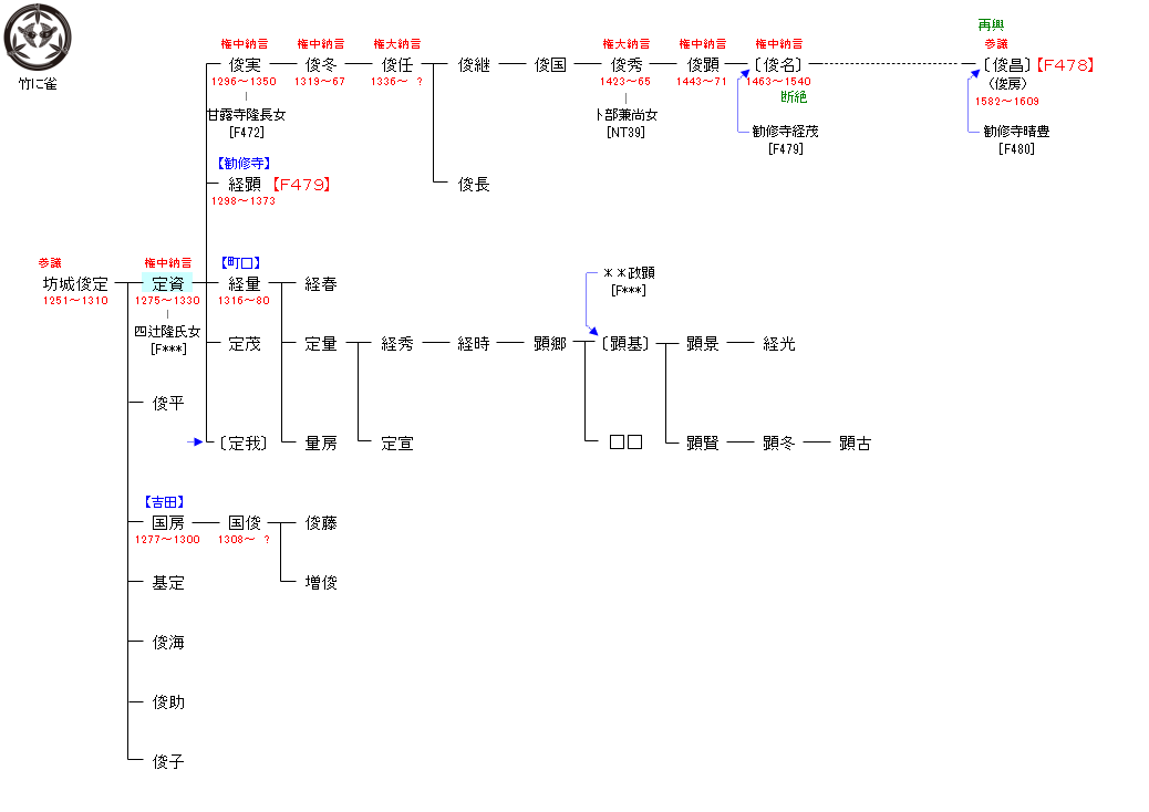 建治4年(1278年)従五位下に叙爵。弘安3年(1280年)従五位上に進み、弘安8年(1285年)に正五位下・左兵衛佐に叙任。正応元年(1288年)中宮権大進を兼ねた。 正応4年(1291年)に左衛門権佐に転任。防鴨河使を兼ね、正応5年11月(1293年1月)五位蔵人に補任された。その後も順調に昇進を重ねた。乾元2年(1303年)参議に任ぜられて公卿に列する。嘉元2年(1304年)従三位・近江権守に叙任され、徳治元年12月(1307年1月)権中納言に進んだ。また、花園天皇の即位に伴って伏見上皇の院政が再開されるとその伝奏を務めた。 文保元年(1317年)伏見上皇が崩御すると、その子の後伏見上皇が跡をついで院政を行うが、定資は引き続き上皇の側近として伝奏を務めるなど、持明院統に接近した。 文保2年(1318年)大宰権帥を辞退。同年、大覚寺統の後醍醐天皇の即位に伴って後宇多上皇の院政が再開されると、その伝奏を務める。しかし、伝奏としての活動を示す記録は少ない。史料上でも引き続き定資が持明院統側に近いことが確認できる。その後、大覚寺統の治世中である10余年は官に就かず、元徳2年(1330年)病となり、7月11日辰の刻、散位のまま66歳で薨去した。その死は頓死であったと伝えられる。