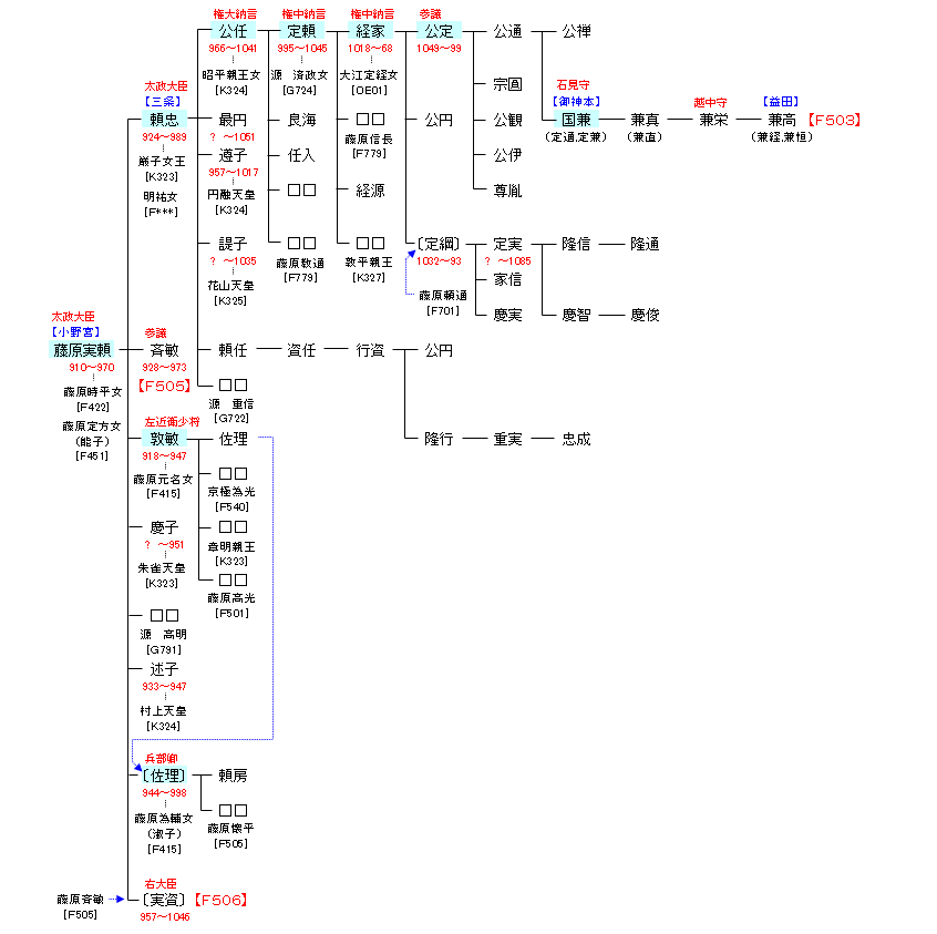 | F501:藤原忠平 | 藤原房前 ― 藤原冬嗣 ― 藤原良房 ― 藤原忠平 ― 藤原実頼 | F502:藤原実頼 |