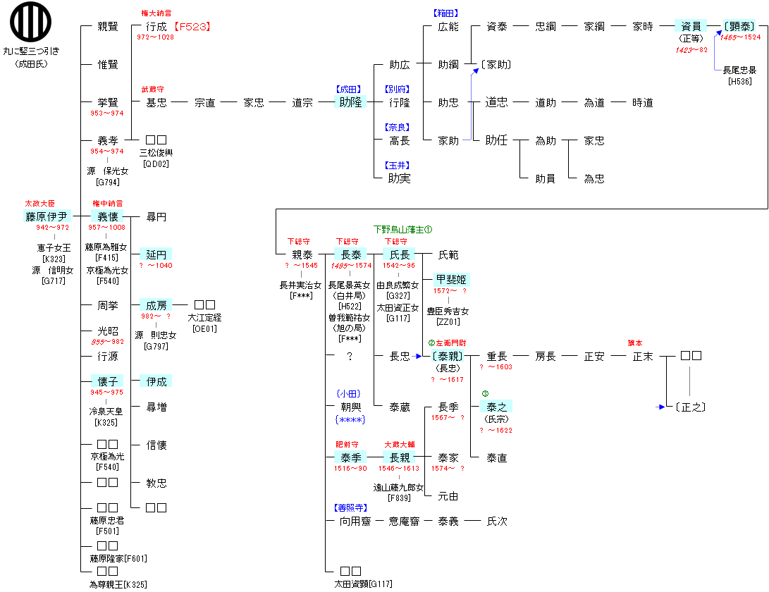 成田親泰の3男として生まれる。『成田系図』によれば、兄の長泰や甥の氏長に仕えた宿老であり、軍功で世に名を知られ、成田一門の「脇惣領」と称された。 |