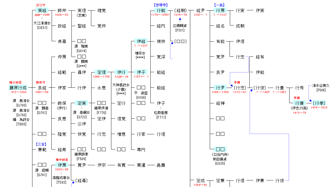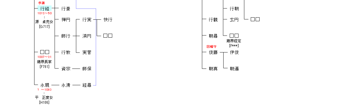 | F522:藤原伊尹 | 藤原房前 ― 藤原冬嗣 ― 藤原良房 ― 藤原忠平 ― 藤原師輔 ― 藤原伊尹 ― 藤原行成 | F523:藤原行成 | ● |
