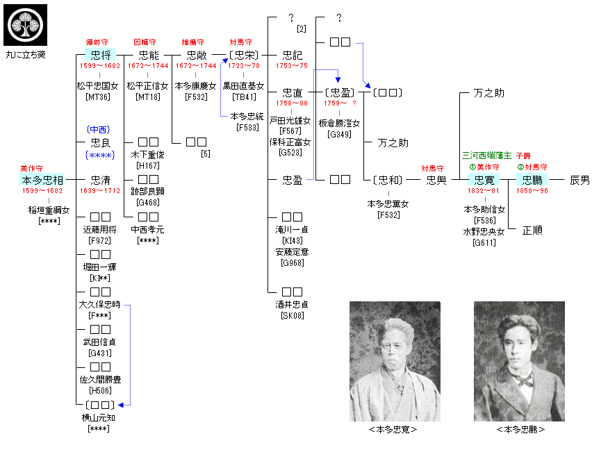 | F531:本多正忠 | 藤原房前 ― 藤原冬嗣 ― 藤原忠平 ― 藤原師輔 ― 藤原兼通 ― 本多助秀 ― 本多正忠 ― 本多忠相 | F534:本多忠相 | ● |
