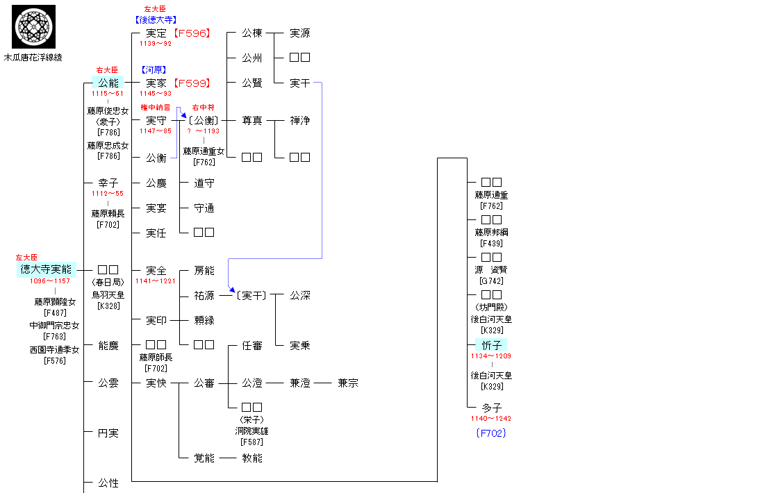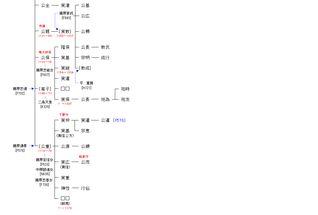 | F552:藤原公実 | 藤原公季 ― 藤原公実 ― 徳大寺実能 | F595:徳大寺実能 |