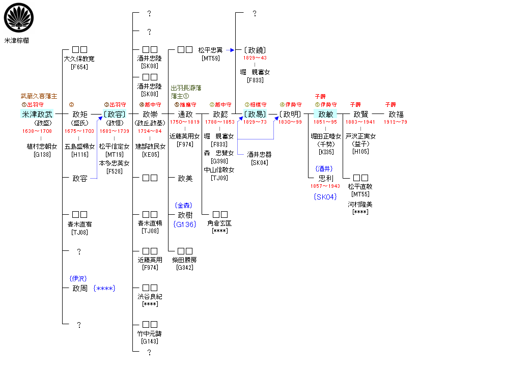 | F603:米津親勝 | 藤原道隆 ― 米津親勝 ― 米津政武 | F604:米津政武 | ● |