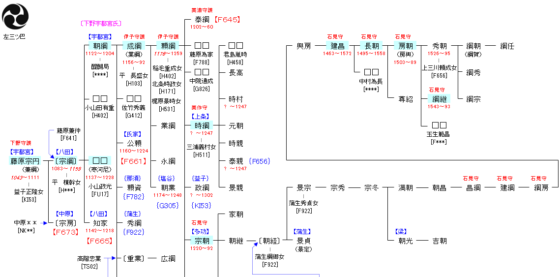 | F641:藤原道兼 | 藤原師輔 ― 藤原道兼 ― 宇都宮宗円 | F644:宇都宮宗円 |