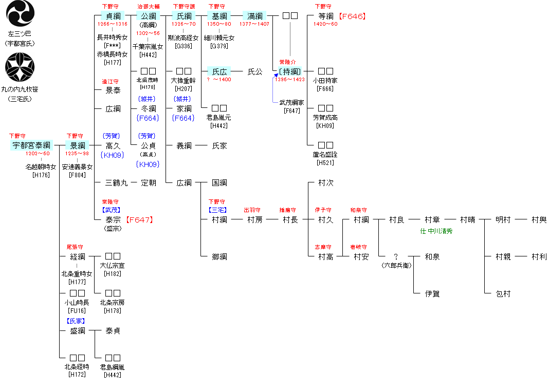 | F644:宇都宮宗円 | 藤原師輔 ― 藤原道兼 ― 宇都宮宗円 ― 宇都宮泰綱 | F645:宇都宮泰綱 |