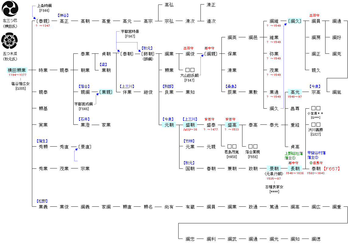 | F644:宇都宮宗円 | 藤原師輔 ― 藤原道兼 ― 宇都宮宗円 ― 横田頼業 | F656:横田頼業 |