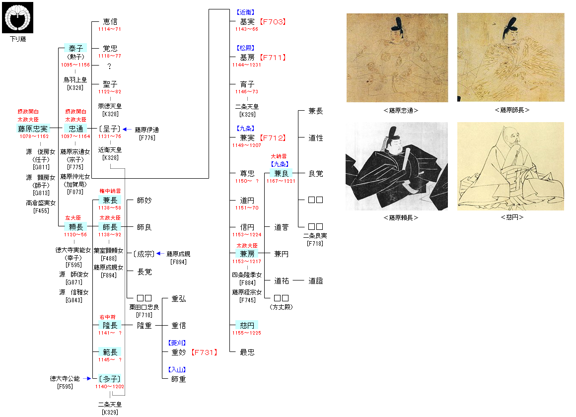 | F701:藤原道長 | 藤原房前 ― 藤原冬嗣 ― 藤原良房 ― 藤原忠平 ― 藤原師輔 ― 藤原道長 ― 藤原忠実 | F702:藤原忠実 |