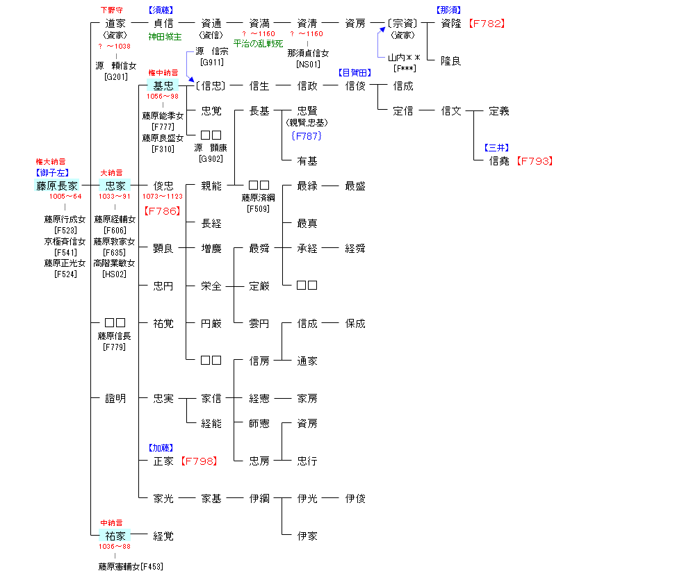| F701:藤原道長 | 藤原道長 ― 藤原長家 | F781:藤原長家 |