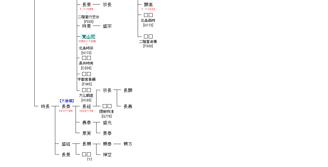 | F803:藤原山蔭 | 藤原鎌足 ― 藤原房前 ― 藤原魚名 ― 藤原鷲取 ― 藤原山蔭 ― 安達盛長 | F804:安達盛長 | ● |