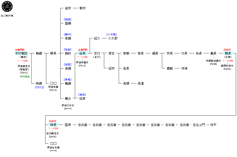 文治年中に朝定が中村常陸入道念西(伊達朝宗)の養子となってまもなく奥州合戦が起こり、文治5年(1189年)8月、念西の4人の息子が源頼朝に従い奥州合戦に従軍し石那坂の戦いで戦功を得、念西は伊達郡と信夫郡を賜わり伊達の地頭になった。同年冬、朝定は念西が地頭となった伊達に移るにあたり常陸冠者為宗に預けられ、常陸四郎と名乗り石那坂の戦い第一の活躍を見せた為宗や荘厳寺の行勇阿闍梨らの養育を受けた。この荘厳寺坊・行勇阿闍梨は念西が荘厳寺を再興した際に鶴岡八幡宮より招聘していた。建久年頃は下野の中村は念西の3男の資綱、常陸の伊佐は常陸冠者為宗、伊達は為重(宗村)と息子の義広がそれぞれ統治していた。 建仁年頃に成人となると念西の遺言に従い中村城に入り本姓の中村を相続した。それまで中村の荘を預かっていた資綱は実質鎌倉にいて幕府の職に就いていた。朝定(義宗)が成人し中村城主となると資綱が長らく鎌倉にあったため領地が疲弊していたので、朝定は領民に良く、そして養父・念西、宗村よりの中村領における治水に励み、下野衣川(現・鬼怒川)よりの水路を勝瓜口より領内への用水路開拓を自らの治世に尽くした。中村領民は朝定が亡くなった後に中村城近くに朝定を慕い『中村大明神』を建立した。 承元3年(1209年)、源実朝が常陸冠者為宗に長世保の拝領地の開墾を命じた際に、朝定を伊佐為家の鎌倉舘預かりとし実質は朝定・縫殿助父子を鎌倉の監視下に置いた。鎌倉幕府は中村領を伊勢神宮領小栗郷「小栗御厨」を管理していた小栗氏に地頭を任じ中村領を管理させた。この頃、朝定は義宗と名乗っていたが、幕府は義経に通ずる義の通字を良しとせず養父・朝宗より1字賜り朝定と改めた。朝定、その子中村縫殿助、孫の中村太郎は、八幡宮に奉納するほどの弓の遣い手であった。承元3年以後、朝定は伊達、伊佐氏のもと鎌倉にあって旧領の下野国中村への帰還は叶わなかった。中村氏が旧領を取り戻すのは、鎌倉幕府が滅亡した朝定より5代後の中村経長の代まで待つことになる。 朝定には源義経の遺児伝承が残る。青森県弘前市新寺町の圓明寺(円明寺)の縁起には「千歳丸のちの経若丸は義経の子であり、千歳丸を常陸坊海尊に託し、常陸介念西に預け後に養子にした」との伝承や、『真岡市史案内』には、朝定は幼名を経若と言い、その出自については源義経の遺児経若であるという。古寺誌によると源義経の遺児経若が伊佐為宗によって養育され成人後、中村蔵人義宗と名乗り、後に改めて中村左衛門尉朝定と名乗った。この遍照寺や中村八幡宮を中心とした地域の寺院等に同様の伝承文献が存在する。 伊達氏側による朝定についての記録・史料については『亀岡八幡宮代参八幡氏由緒』にその名を確認できる。伊達氏側の史料によると朝定については念西の嫡子としており、その名は八幡太郎義宗と記載されている。藤原姓を本姓とする伊達氏において源氏嫡流を意味する八幡太郎の名を冠し、本姓中村を継がせた嫡子扱いと伊達氏においては特別扱いをしていたのが窺いとれる。 『吾妻鏡』の文治3年2月10日条には、義顕(義経)が奥州入りした際に「正室と男子,女子の子供を連れていた」とされているが、衣川の戦いで死亡したのは4歳になる女児のみ記載されていて男子の死については記載されていない。『続群書類従』の「清和源氏系図」には源義経の男子として千歳丸が挙げられている(陸奥国の衣川館において3歳で誅殺されたとの記載もある)。秀衡が、常陸坊海尊に義経の縁者にあたるとされている念西に託すよう命じたとのことで義経一行が奥州入りした文治3年2月から秀衡が亡くなったとされる10月の8ヶ月の間に経若が連れ出されたされていることや衣川の戦いで亡くなったのが女子のみの記録などから、この千歳丸が経若であるとの伝承を裏付けているとの説もある。