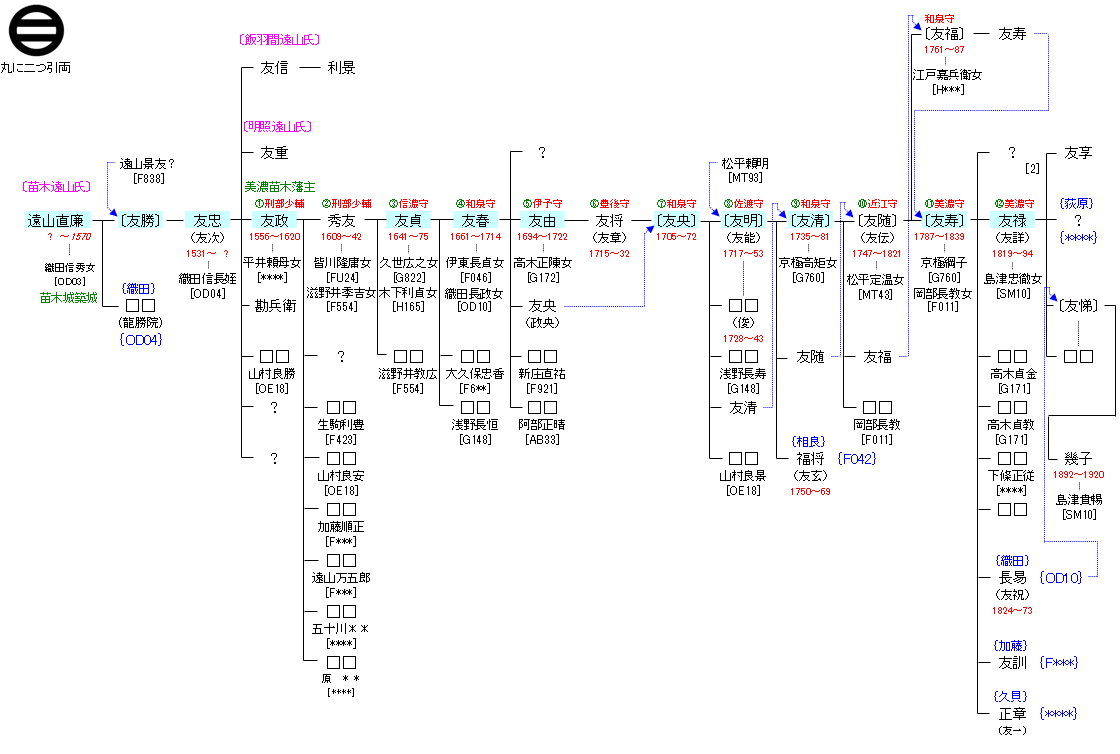 | F838:遠山景朝 | 藤原魚名 ― 藤原利仁 ― 藤原重光 ― 遠山景朝 ― 遠山直廉 | F840:遠山直廉 | ● |