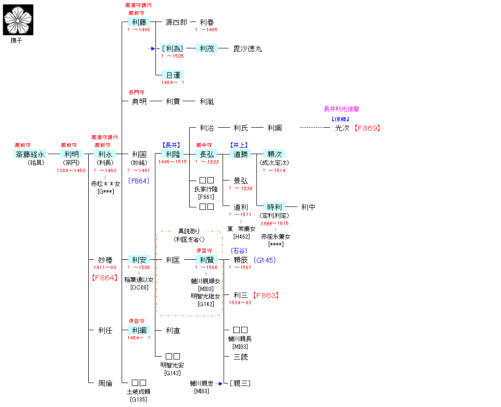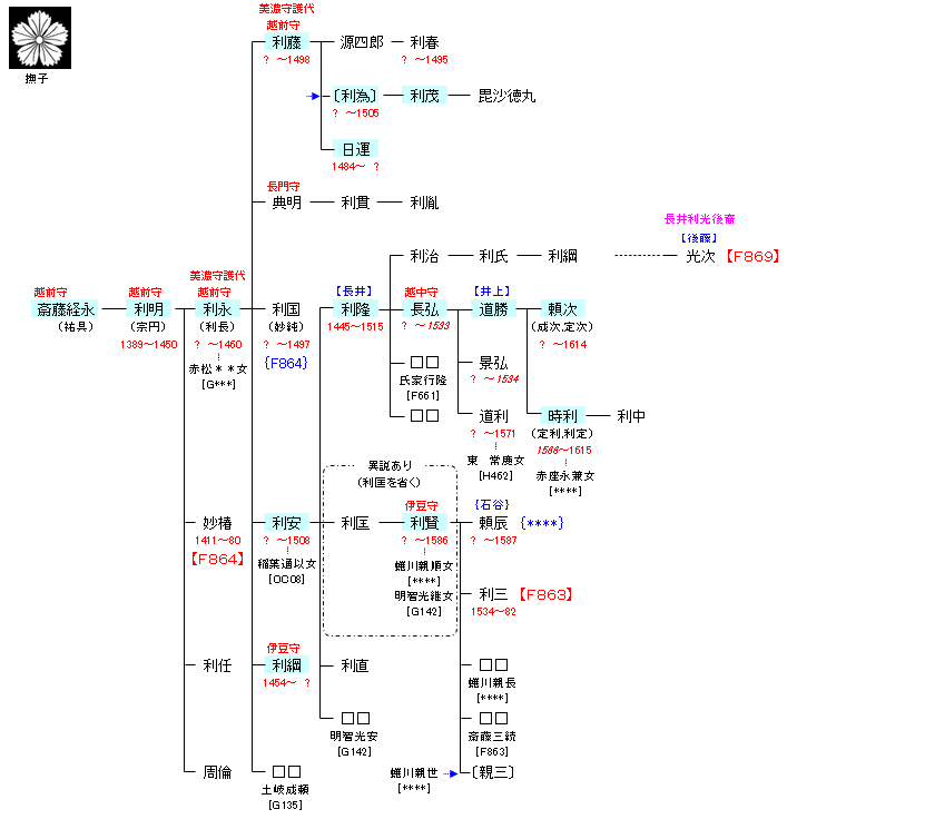 | F861:赤塚景頼 | 藤原魚名 ― 藤原利仁 ― 斎藤伊傳 ― 斎藤則光 ― 赤塚宗景 ― 赤塚宗長 ― 赤塚景頼 ― 斎藤経永 | F862:斎藤経永 |