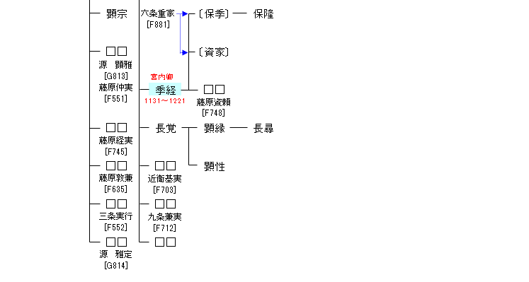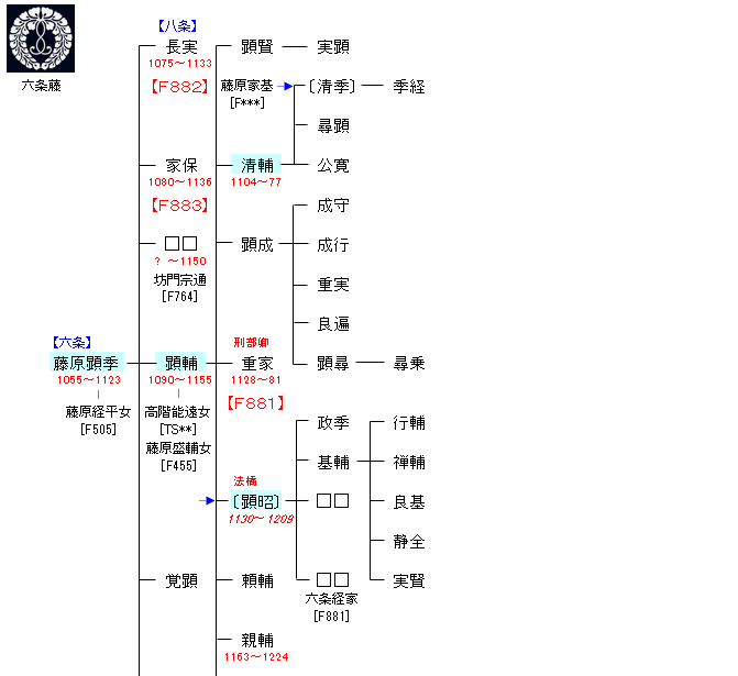 | F879:藤原連茂 | 藤原魚名 ― 藤原末茂 ― 藤原連茂 ― 藤原顕季 | F880:藤原顕季 |