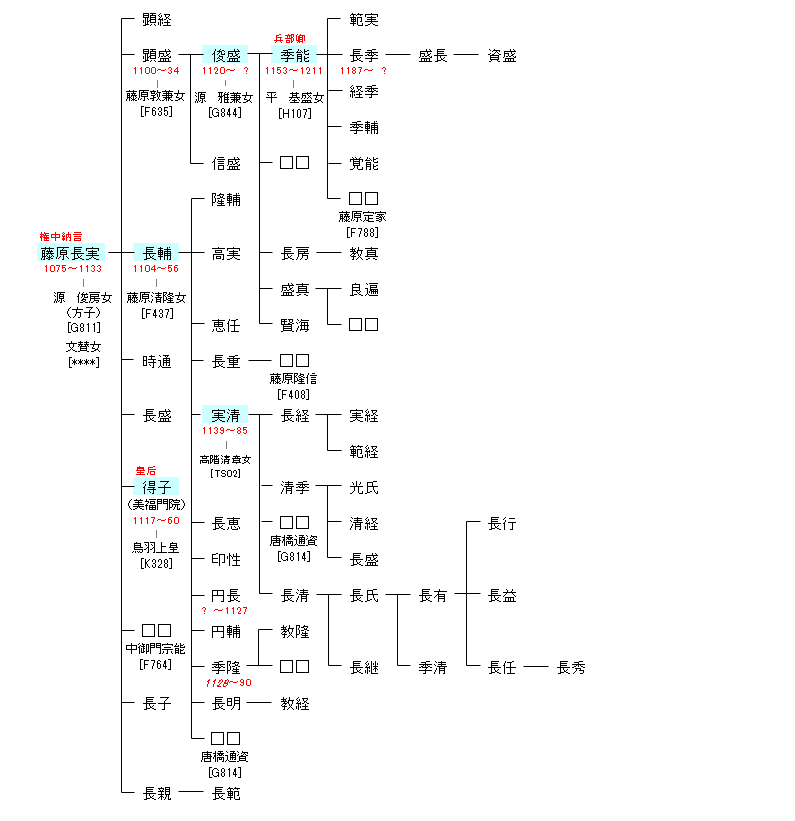 | F880:藤原顕季 | 藤原魚名 ― 藤原末茂 ― 藤原連茂 ― 藤原顕季 ― 藤原長実 | F882:藤原長実 | ● |