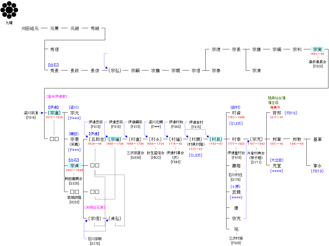 | F901:藤原秀郷 | 藤原魚名 ― 藤原秀郷 ― 刈田経元 | F906:刈田経元 | ● |