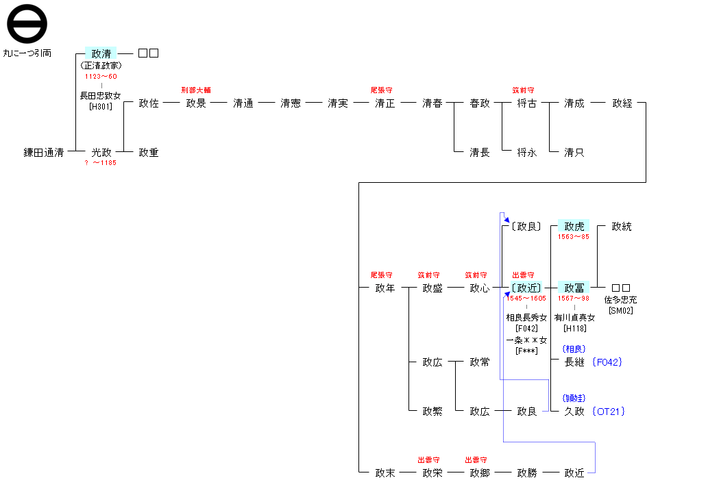 | F938:首藤助清 | 藤原秀郷 ― 藤原千常 ― 佐藤公清 ― 首藤助清 ― 鎌田通清 | F939:鎌田通清 | ● |