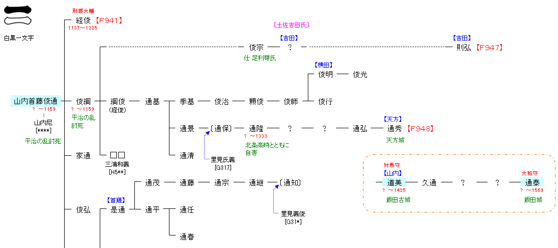 | F938:首藤助清 | 藤原秀郷 ― 藤原千常 ― 佐藤公清 ― 首藤助清 ― 山内首藤俊通 | F940:山内首藤俊通 |