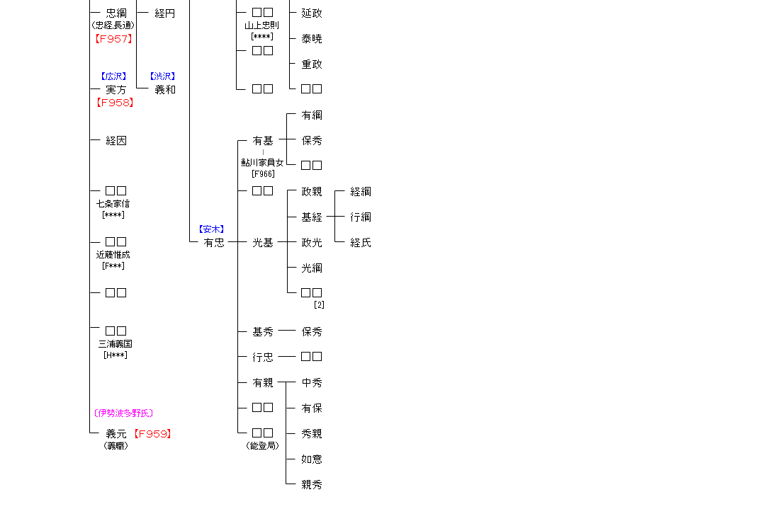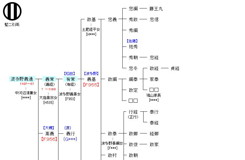 | F953:佐伯経範 | 藤原秀郷 ― 藤原千常 ― 佐伯経範 ― 波多野義通 | F954:波多野義通 |