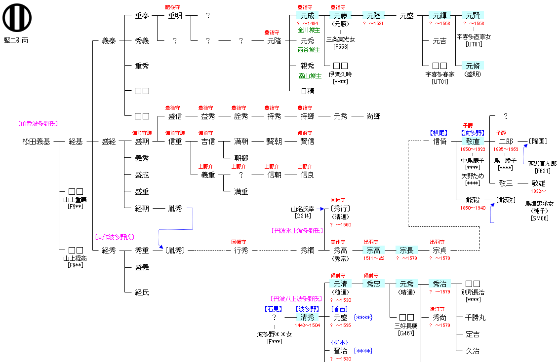 | F954:波多野義通 | 藤原秀郷 ― 藤原千常 ― 佐伯経範 ― 波多野義通 ― 松田義基 | F955:松田義基 | ● |