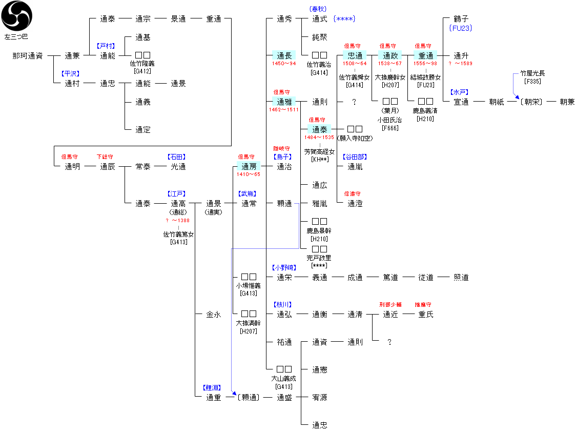 | F929:藤原千常 | 藤原魚名 ― 藤原秀郷 ― 藤原千常 ― 那珂通資 | F970:那珂通資 | ● |