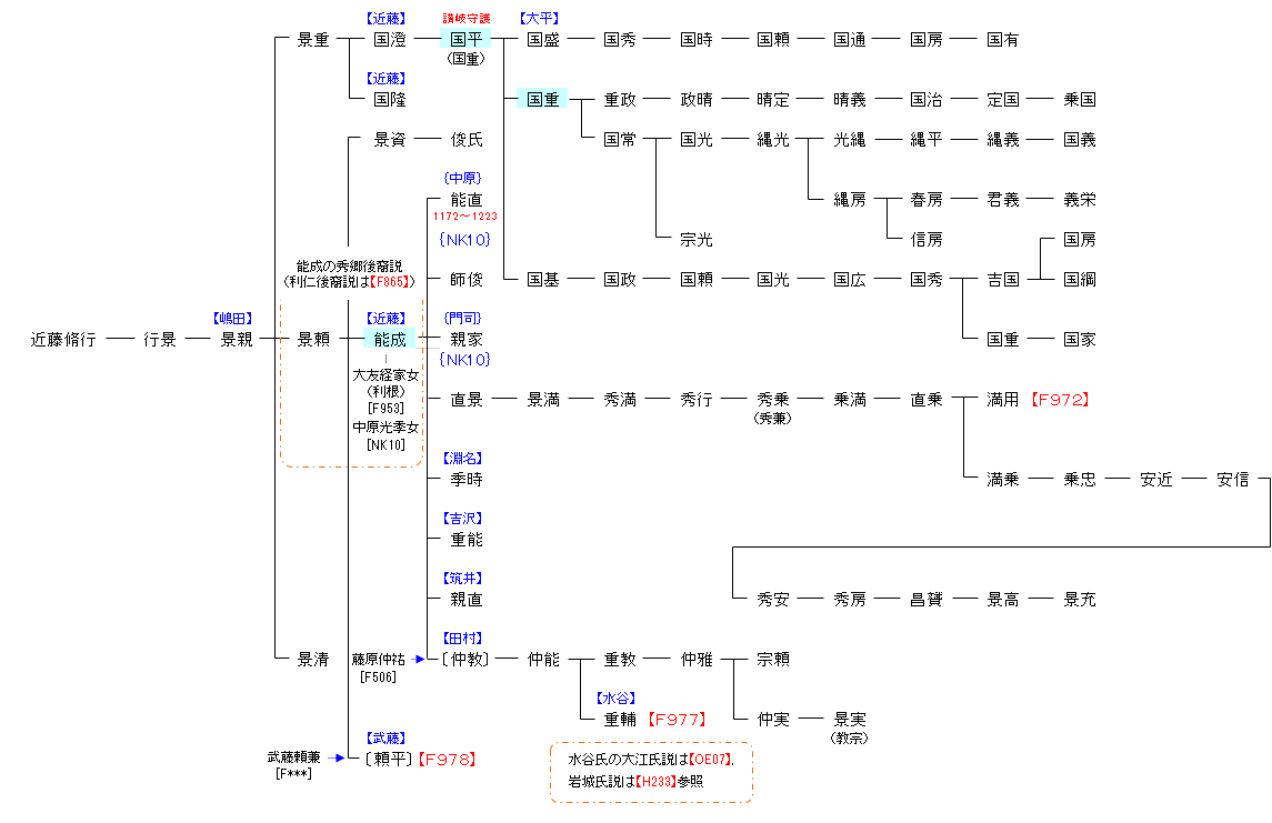 | F929:藤原千常 | 藤原魚名 ― 藤原秀郷 ― 藤原千常 ― 近藤脩行 | F971:近藤脩行 |