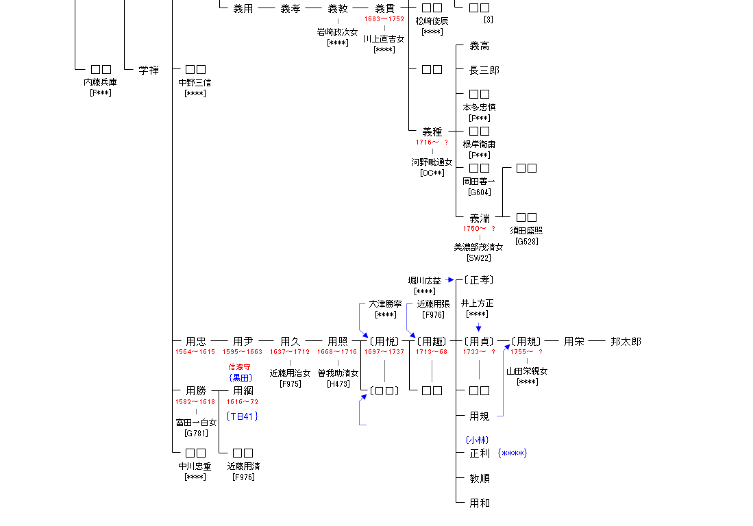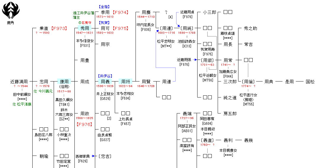 | F971:近藤脩行 | 藤原魚名 ― 藤原秀郷 ― 藤原千常 ― 近藤脩行 ― 近藤満用 | F972:近藤満用 |