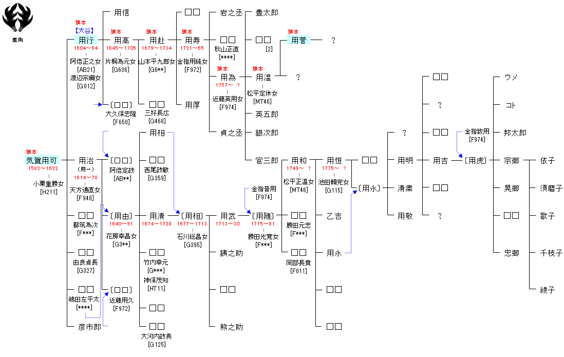 | F972:近藤満用 | 藤原魚名 ― 藤原秀郷 ― 藤原千常 ― 近藤脩行 ― 近藤満用 ― 近藤用可 | F975:近藤用可 | ● |