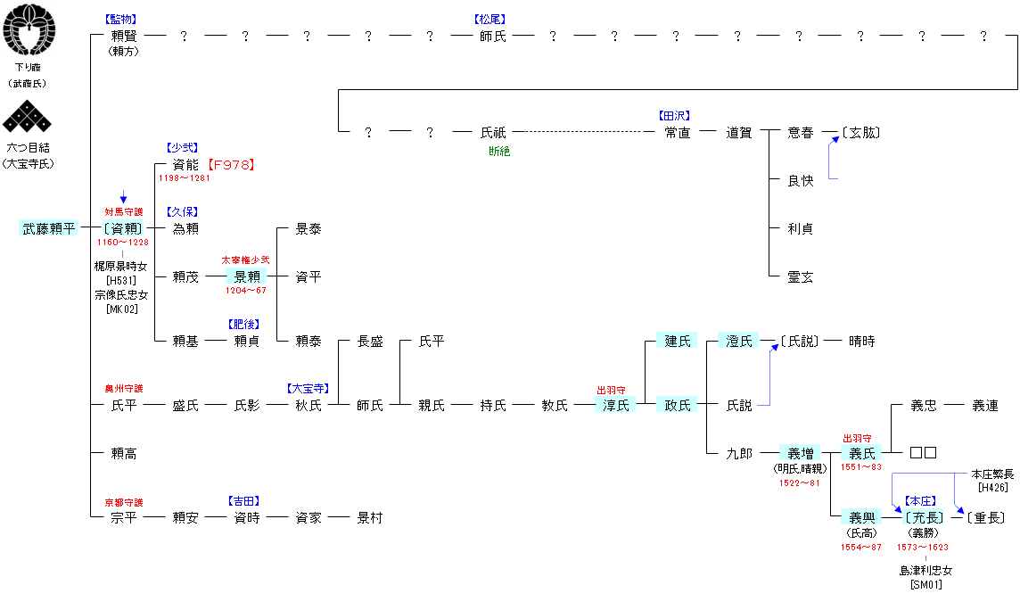 | F971:近藤脩行 | 藤原魚名 ― 藤原秀郷 ― 藤原千常 ― 近藤脩行 ― 武藤頼平 | F978:武藤頼平 |