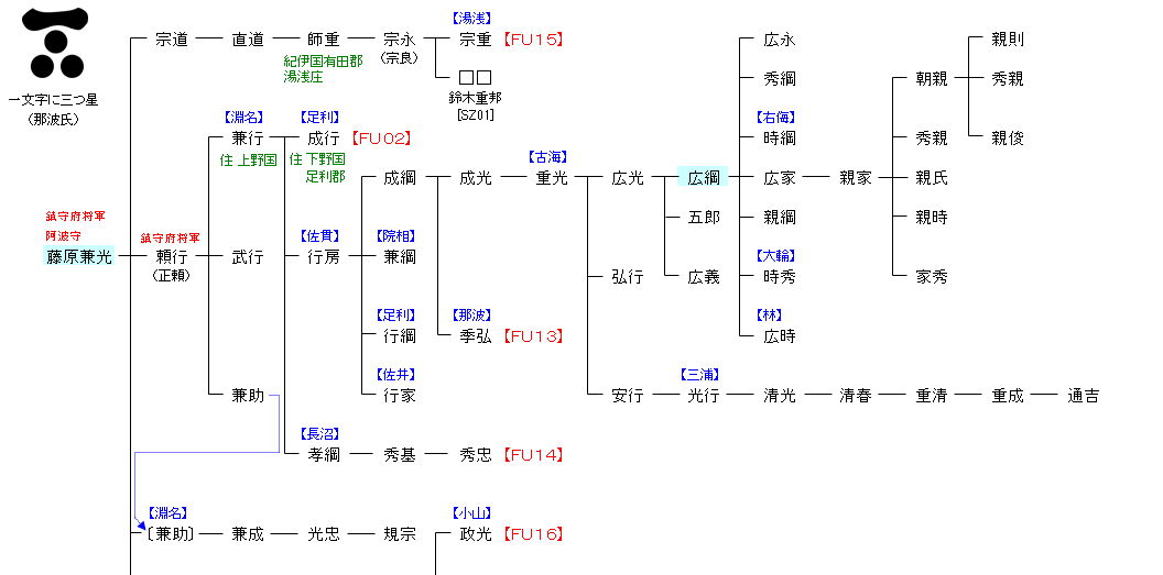 | F929:藤原千常 | 藤原秀郷 ― 藤原千常 ― 藤原兼光 | FU01:藤原兼光 |