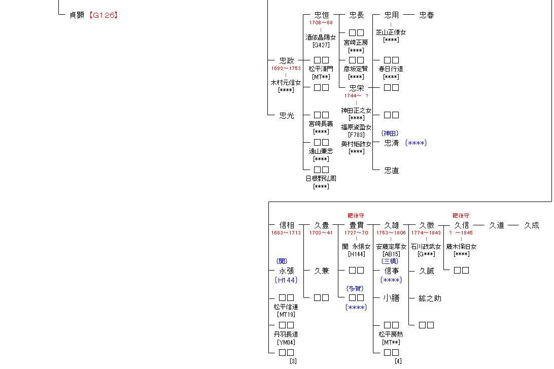 | G113:源 頼政 | 源 経基 ― 源 満仲 ― 源 頼光 ― 源 頼綱 ― 源 仲政 ― 源 頼政 ― 大河内顕綱 | G125:大河内顕綱 | ● |
