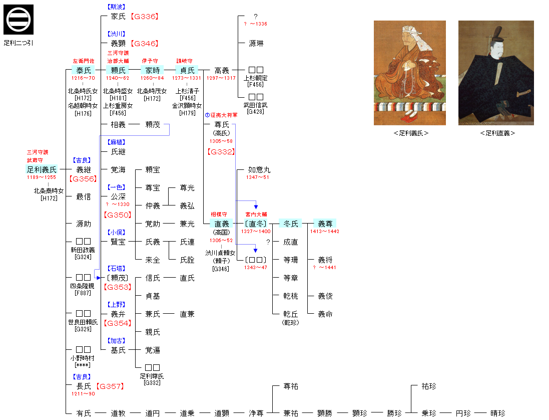 | G311:源 義国 | 源 経基 ― 源 頼信 ― 源 義国 ― 足利義氏 | G331:足利義氏 |
