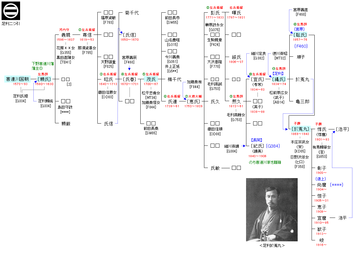 | G334:足利基氏 | 源 経基 ― 源 頼信 ― 源 義国 ― 足利義氏 ― 足利尊氏 ― 足利基氏 ― 喜連川国朝 | G335:喜連川国朝 | ● |