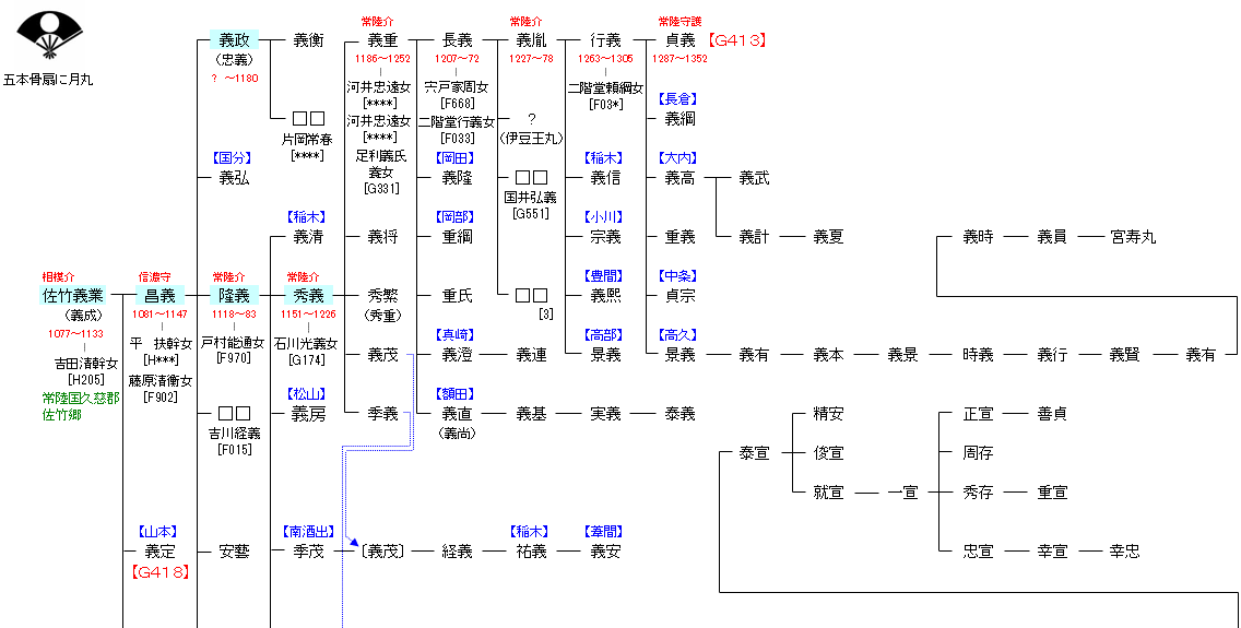| G411:源 義光 | 源 経基 ― 源 頼信 ― 源 義光 ― 佐竹義業 | G412:佐竹義業 |