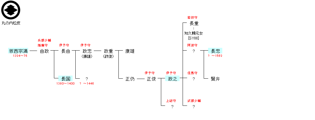 | G452:小笠原長忠 | 源 義清 ― 小笠原長清 ― 小笠原長忠 ― 坂西宗満 | G461:坂西宗満 | ● |
