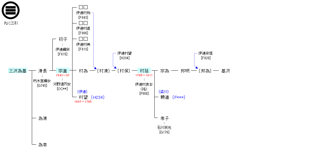 | G638:飯島為光 | 源 経基 ― 源 満快 ― 片切為基 ― 飯島為光 ― 三沢為基 | G639:三沢為基 | ● |