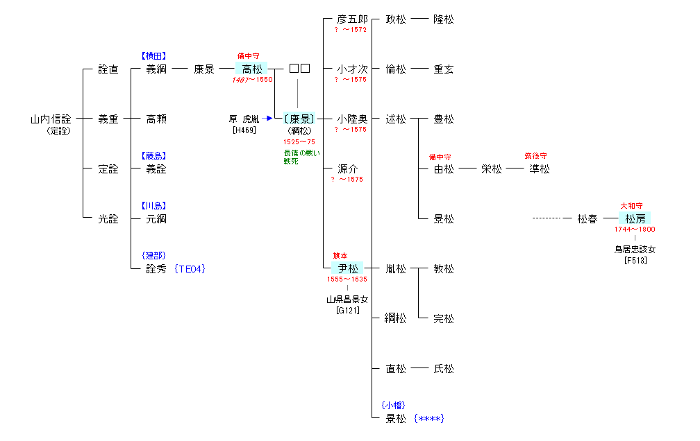 | G751:六角泰綱 | 源 雅信 ― 源 扶義 ― 佐々木定綱 ― 佐々木信綱 ― 六角泰綱 ― 山内信詮 | G754:山内信詮 | ● |