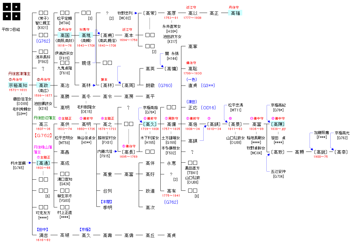 | G759:京極高氏 | 源 雅信 ― 源 扶義 ― 佐々木定綱 ― 佐々木信綱 ― 京極氏信 ― 京極高氏 ― 京極高知 | G761:京極高知 |