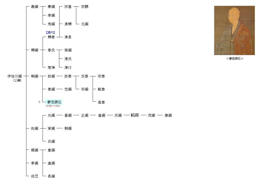 鎌倉時代末から室町時代初期にかけての臨済宗の禅僧で作庭家,漢詩人,歌人でもある。別名を木訥叟。尊称は七朝帝師。伊勢国で誕生し宇多天皇9世孫と伝えられ、また、母方は平氏である。幼少時に出家し、母方の一族の争い(霜月騒動?)で甲斐国に移住する。建仁寺の無隠円範らに学んだ後、元の渡来僧の一山一寧門下の首座となったものの印可に至らず、のち浄智寺の高峰顕日の法を嗣ぐ。夢窓派の祖。 後醍醐天皇にその才覚を見い出されて尊崇を受け、「夢窓国師」の国師号を下賜された。以降、入滅後も含めると計7度の国師号を授与され、後世には七朝帝師と称えられる。禅風においては純粋禅ではなく[注釈 2]、日本の伝統的仏教である天台宗や真言宗とも親和性の高い折衷主義的な試みを行った[2]。そのため、臨済禅の主流派(応燈関派)にこそなれなかったものの、幅広い層からの支持を受けた。たとえば、後醍醐に続き、足利尊氏・直義兄弟からも崇敬された。足利直義との対話を記録した『夢中問答集』は、信心の基本、仏道の要諦を指し示す思想史上重要な書である。 禅僧としての業績のほか、禅庭・枯山水の完成者として世界史上最高の作庭家の一人であり、天龍寺庭園と西芳寺庭園など夢窓疎石の禅庭は、二条良基の連歌・歌論や世阿弥の猿楽(能楽)とともに、わび・さび・幽玄として以降の日本における美の基準を形成した。後醍醐帝の鎮魂のために建立された天龍寺の造営にあたっては、直義との協議のもと元に天龍寺船を派遣してその儲けによって造営費用を捻出するなど、商売人としての才覚もあった。さらに、五山文学の有力漢詩人であり、和歌においても勅撰和歌集に11首が入集するなど、文学史上でも足跡を残している。