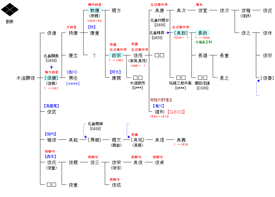 | G830:北畠顕能 | 源 師房 ― 源 顕房 ― 源 雅実 ― 中院通方 ― 北畠雅家 ― 北畠顕能 ― 木造顕俊 | G832:木造顕俊 |