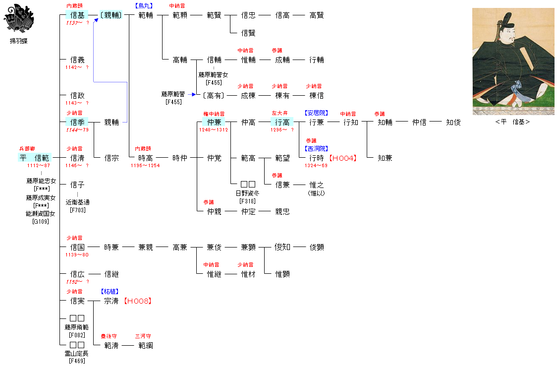 | H002:平 時信 | 平 高棟 ― 平 時信 ― 平 信範 | H003:平 信範 |